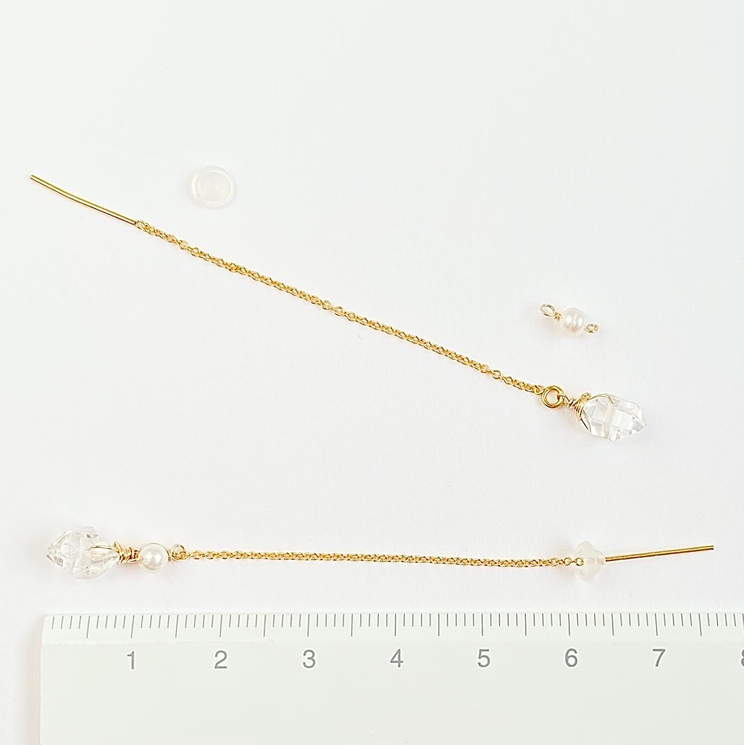 ハーキマーダイヤモンドとベビーパールのアメリカンピアス14kgf