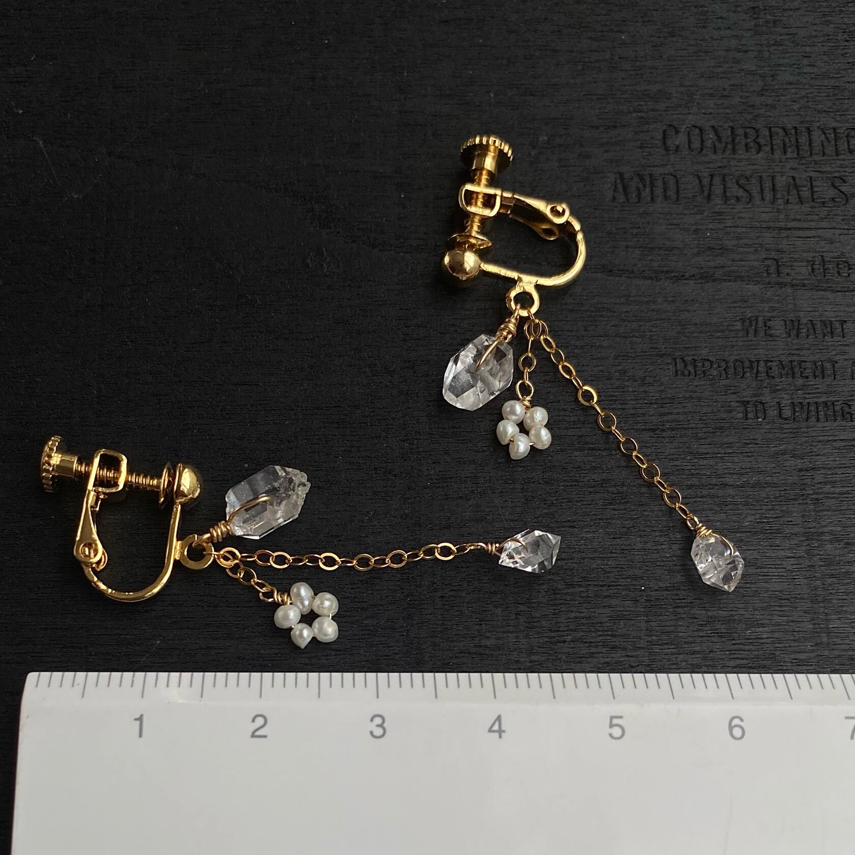 ハーキマーダイヤモンドと極小パールのイヤリング