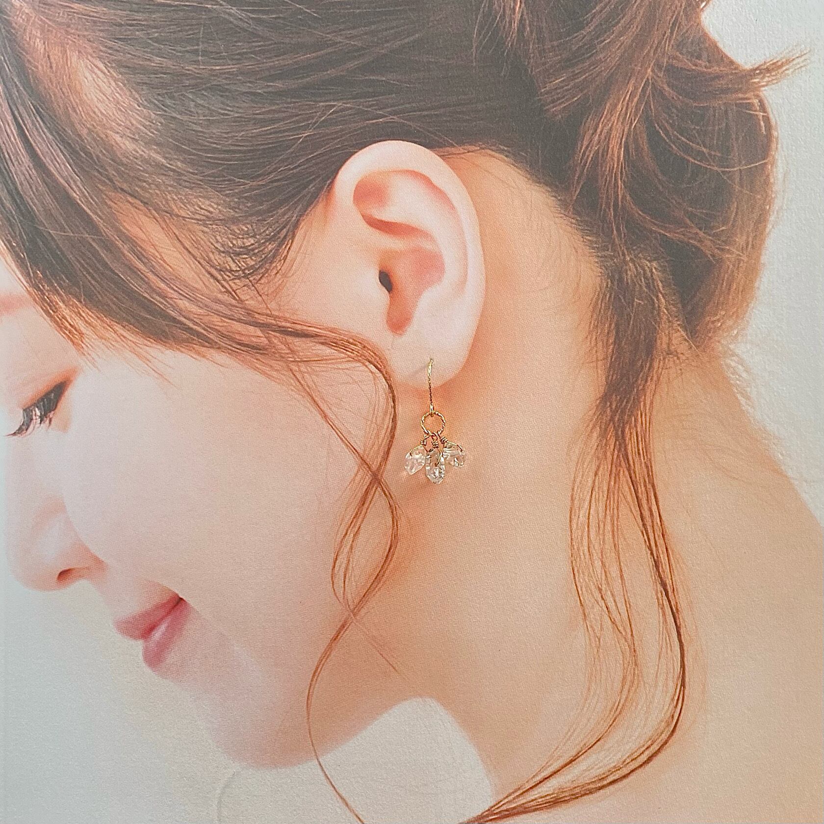 輝きの美しいニューヨーク産ハーキマーダイアモンドを3個使用して、贅沢でエレガントなピアスに仕立てました