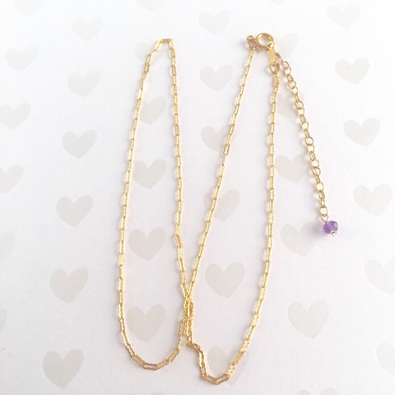 ☆40cm+5cmアジャスターネックレスは、襟の開いたお洋服の時、Vネックのセーターの時、シャツのボタンを1.2個開けた中にネックレスをする時、小さめのチャームを着けたい時、縦に長いチャームを着けたい時にちょうどいい定番の長さです。