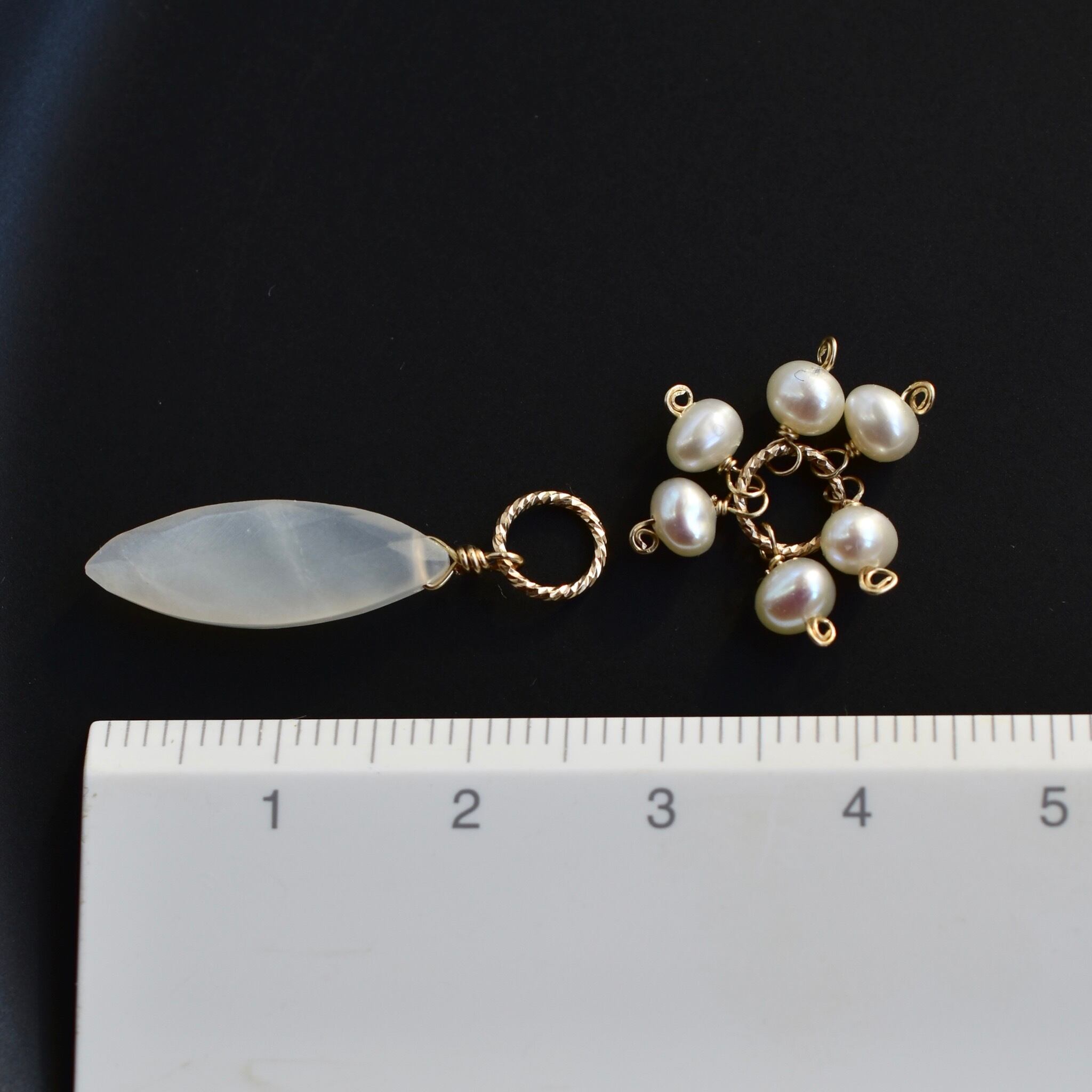 ムーンストーン&淡水パールのネックレスチャームセット 14kgf