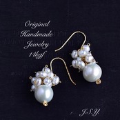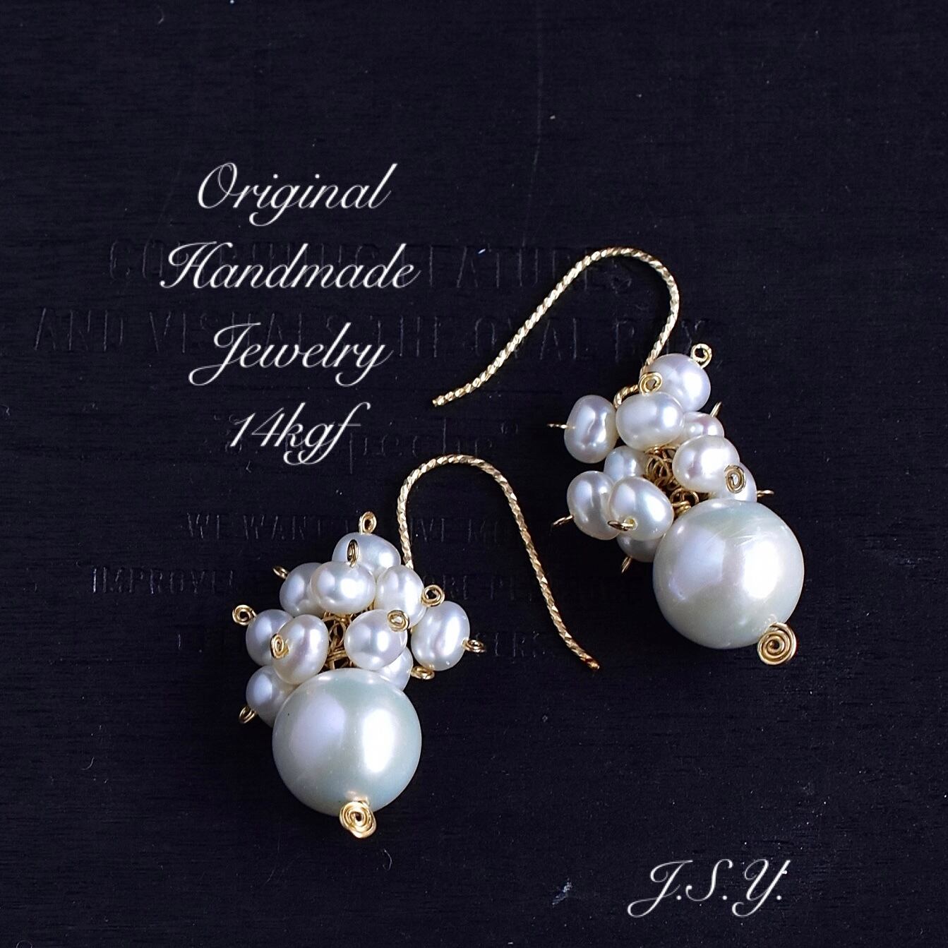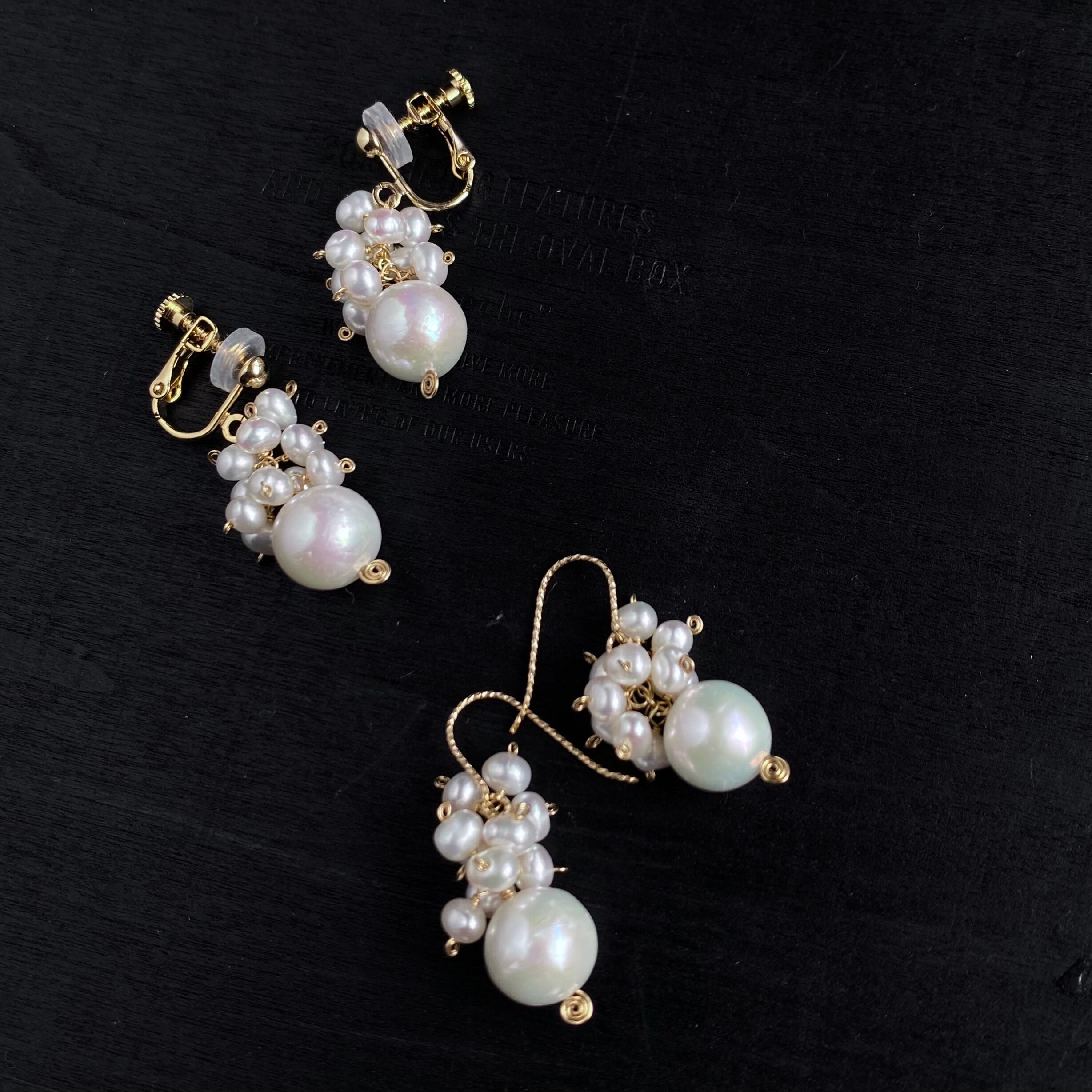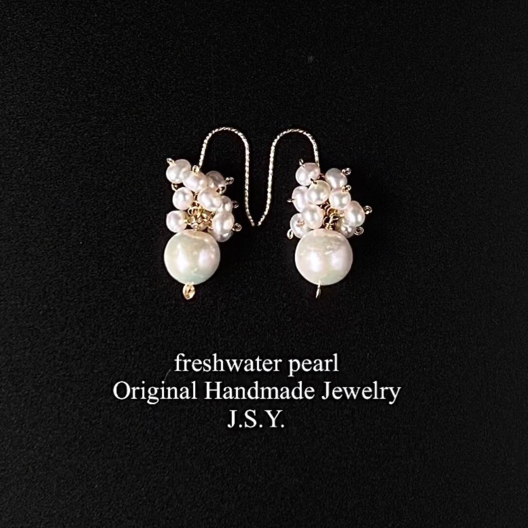 大粒淡水パールとつぶつぶパールのピアス(イヤリング)