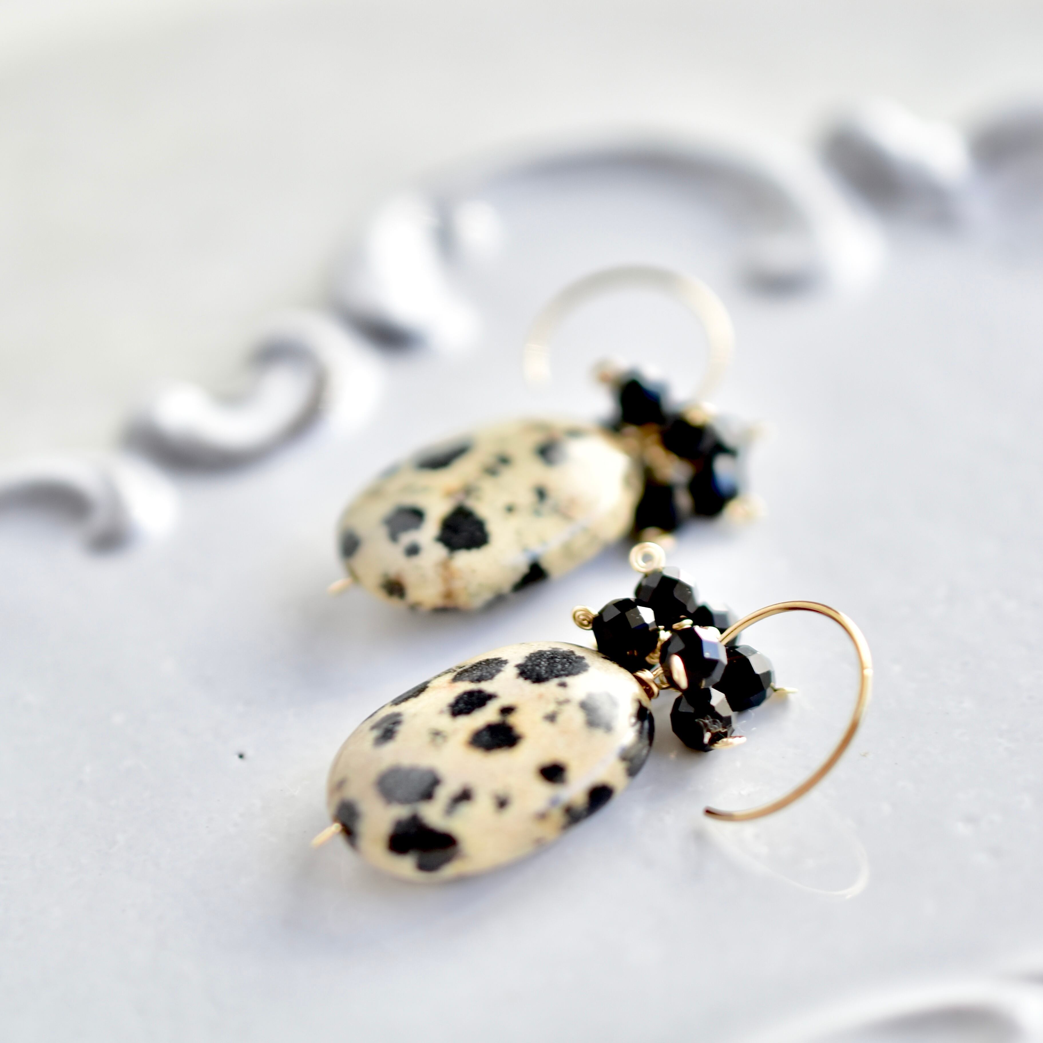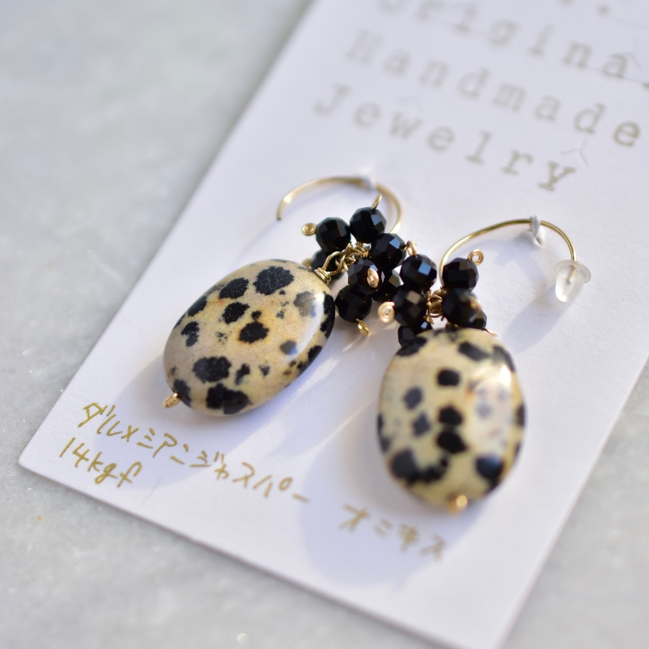 ダルメシアンジャスパーとオニキスのピアス(イヤリング)