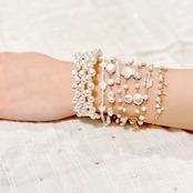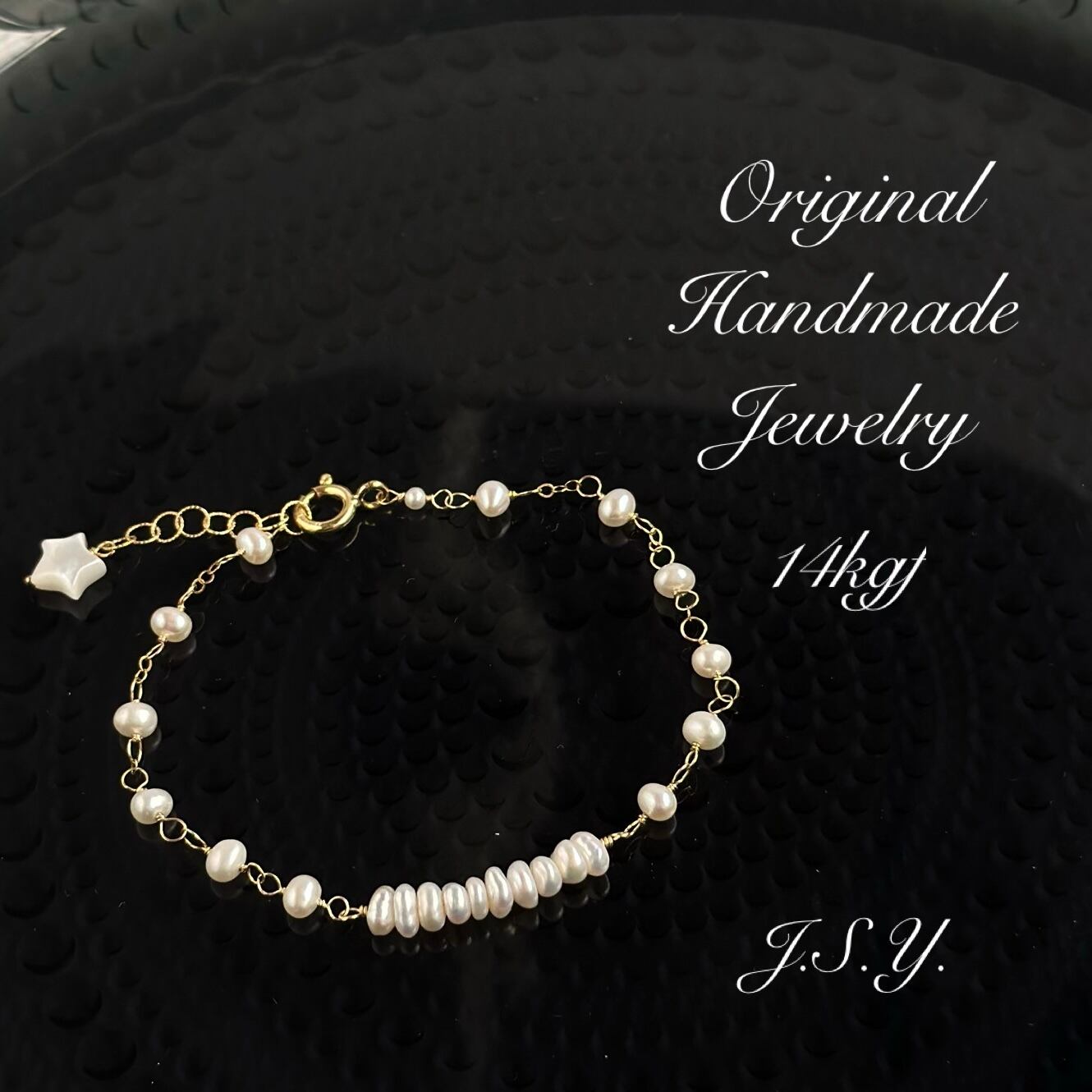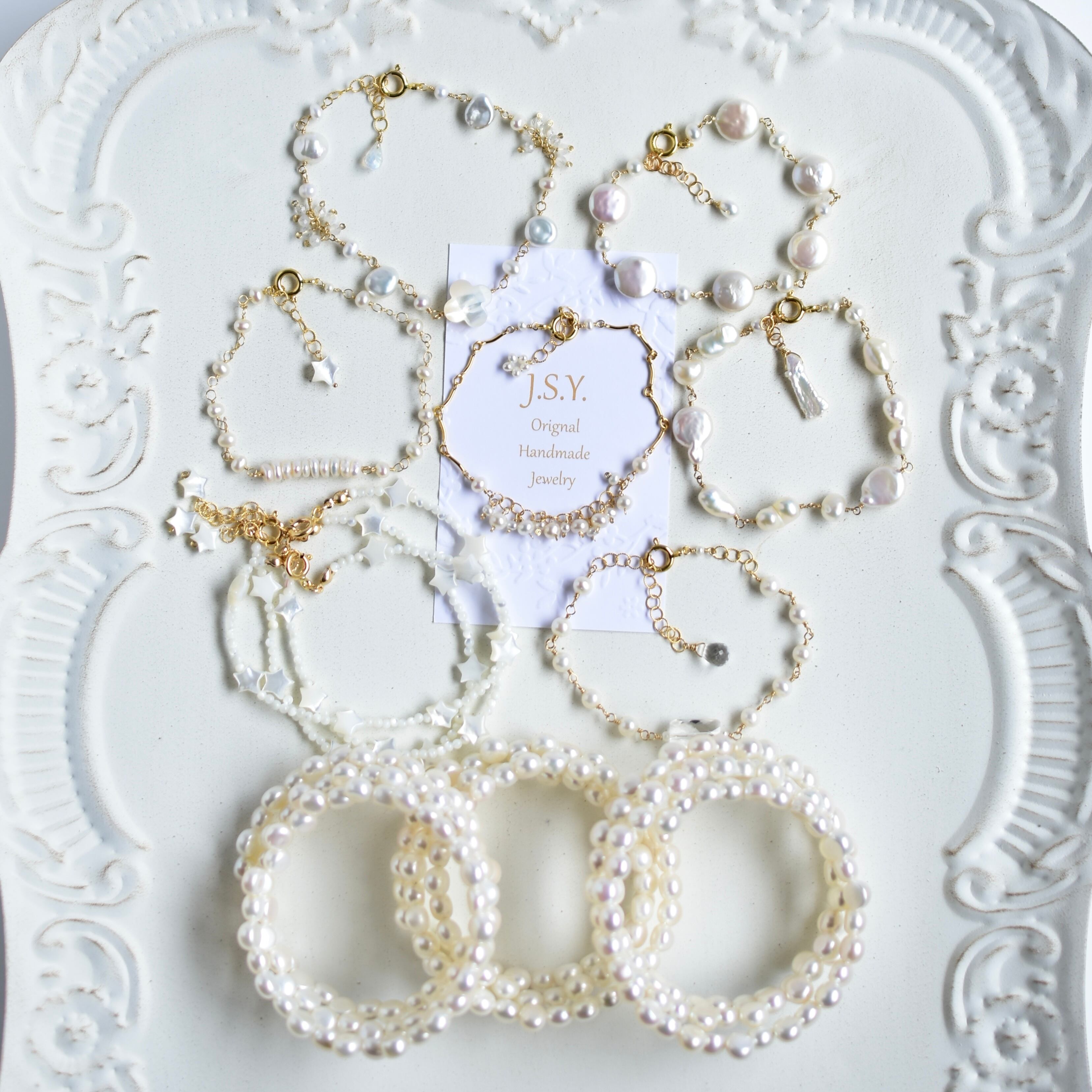 4mmポテトパールとくっつけて繋いだ5mmのコインパールを繋いだ淡水パールのブレスレットです