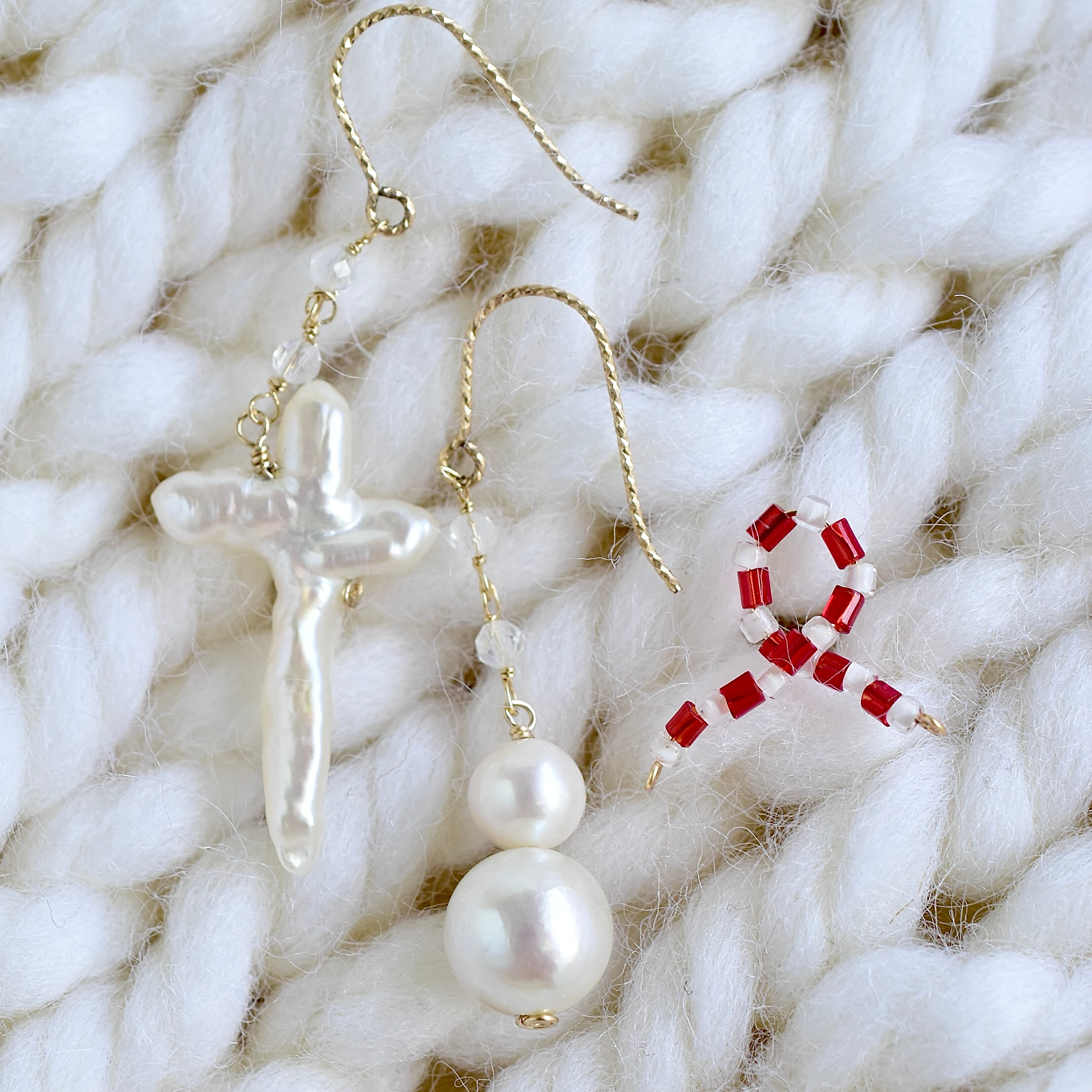 スノーマン&クロスの淡水パールピアス、イヤリング 14kgf
